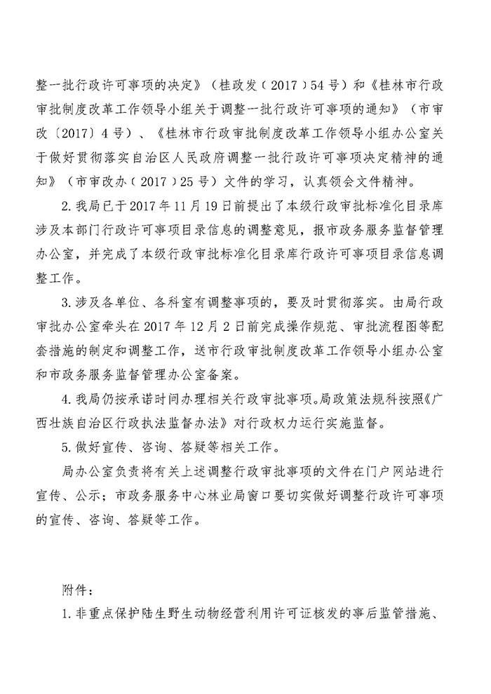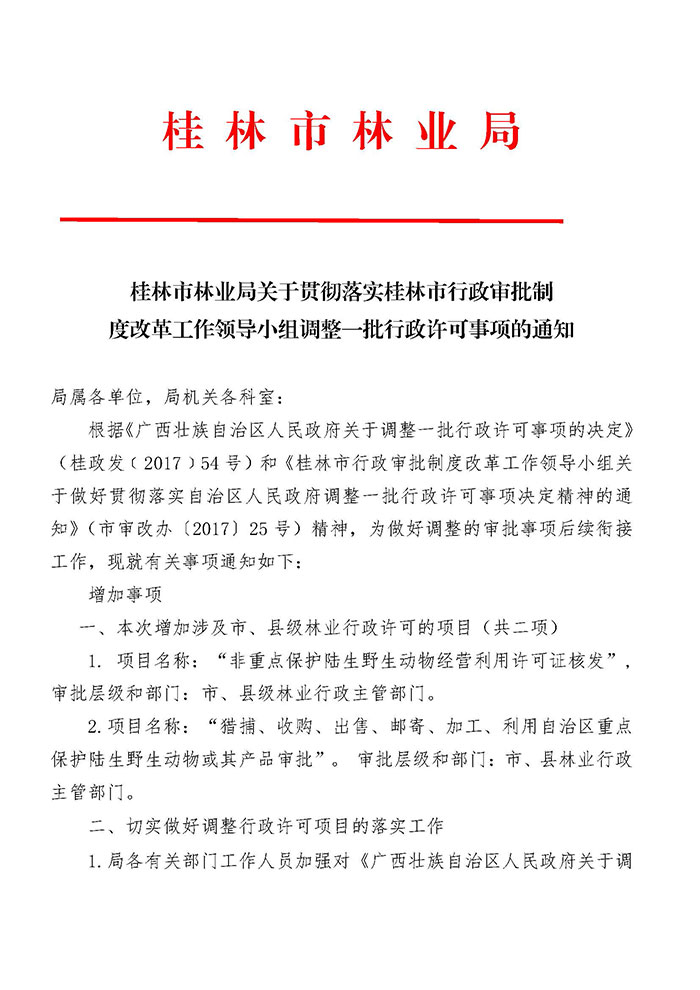 365体育在线手机版关于贯彻落实桂林市行政审批制度改革工作领导小组调整一批行政许可事项的通知