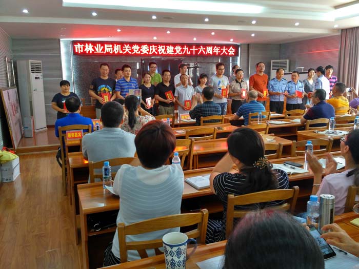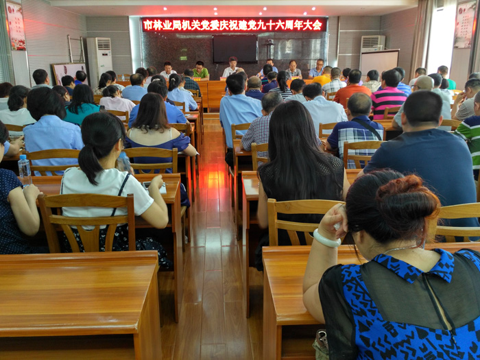 近日,市林业局机关党委召开党员大会,庆祝中国共产党建党九十六周年。局党组成员、正副调研员、局机关党委委员、各支部书记、局机关大院内全体党员出席会议。