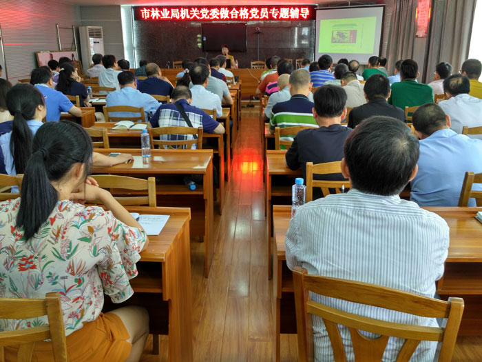 7月7日上午,市林业局机关党委开展 "周五党日+党员学习教育"活动。特邀请市委党校统战理论教研室主任、副教授卢雪艳同志为全局党员讲授"做合格党员"的专题辅导党课。市林业局100余名党员干部参加专题辅导学习。