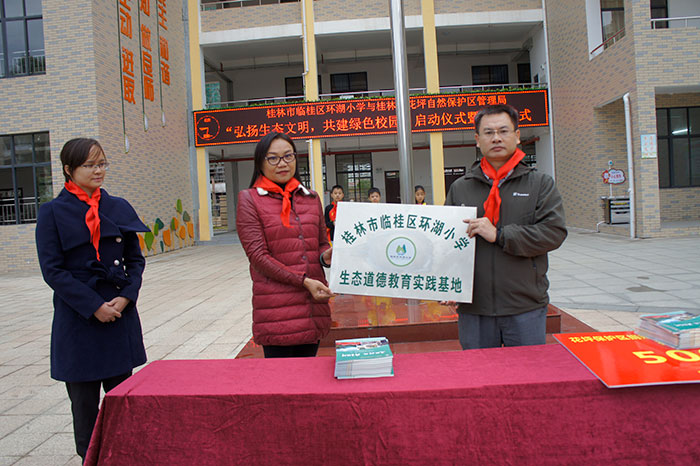 花坪国家级自然保护区管理局向临桂区环湖小学赠送牌匾