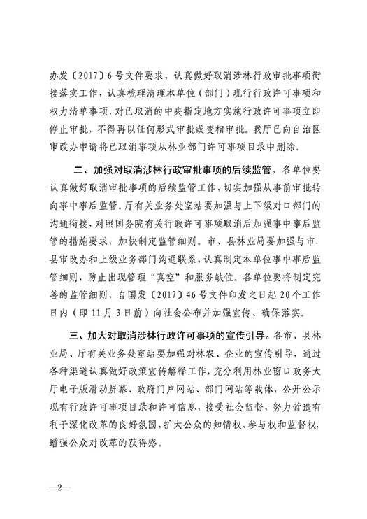 关于贯彻落实国务院取消一批涉林行政许可事项有关工作的通知(桂林办规字〔2017〕15 号)