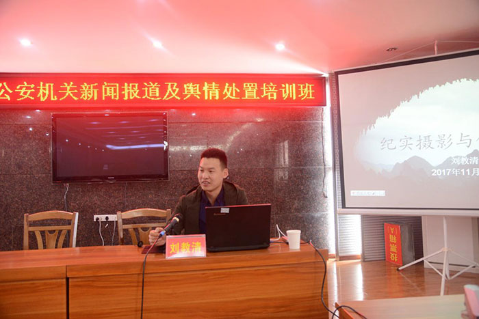培训聘请桂林日报社会专题部副主任、新华社签约摄影师刘教清、市公安局宣传科科长刘青、副科长苏霞等老师前来授课。培训内容包括:新闻报道写作、纪实摄影、舆情处置等。